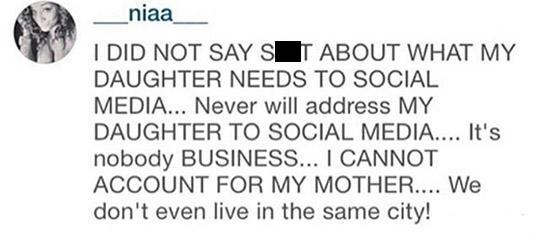outlets looking for inside scoops. Nia Amey's mom airing Brown's business online: