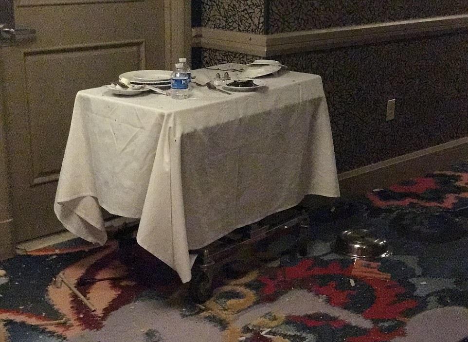 A photo of the room service cart in Paddock's room shows service for two people (two sets of plates and two water bottles). Photo from the Daily Mail UK website. My condolences to the victims' families. What transpired is heinous, evil and sick. The whole thing is vile and inhumane. May God bring everyone responsible for the murders to justice and unmask what truly happened. STORY SOURCE Hotel Guest Next Door To Las Vegas Shooter Saw ‘Multiple Gunmen’ October 3, 2017 Baxter Dmitry News, US - A man who was staying in the room next to the shooter in Las Vegas has confirmed he saw multiple gunmen involved in the Las Vegas attack. An Australian man who was staying in the room next to the shooter in the Mandalay Bay has confirmed he witnessed multiple gunmen involved in the Las Vegas attack. “There were multiple people dead and multiple shooters. I was just hiding waiting for police to come get us. I got outside safely and was hiding in bushes,” Brian Hodge told Australia’s Courier-Mail. Mr. Hodge, who was staying in room 32134, next door to Stephen Paddock in room 32135, also provided important information when he revealed that a security guard was killed by police. “My floor is a crime scene. They killed a security guard on my floor.” Who was the “security guard” who was killed by police? Wendy Miller from Cooroy, on the Sunshine Coast – another Australian caught up in the Las Vegas shooting – may have provided a missing piece of the puzzle. Also speaking to the Courier-Mail, Ms Miller said she was at a bar in the nearby Luxor Hotel with her husband when she saw what she described as a “man of interest” run by. Ms Miller said the man sprinted through her hotel after coming off an escalator from the Mandalay Bay. “The man that they [security] were chasing was wearing a security jacket like them,” she said. Mr Hodge’s eyewitness report of multiple gunmen and a dead security guard, and with Ms Miller’s report of a security guard being chased by authorities, suggest that the mainstream media narrative of the “lone wolf” gunman is not the truth. The fact is that this was an orchestrated, co-ordinated attack by multiple conspirators, and the mainstream media are attempting to cover it up. Two explosive videos provided to Your News Wire have also confirmed there were multiple shooters involved in a co-ordinated attack, and the mainstream media of a “lone wolf” gunman operating without a motive is a lie. Both videos show gunfire originating from the fourth floor of the Mandalay Bay Hotel, much lower than the 32nd floor, where the mainstream media is claiming Stephen Paddock, a “lone wolf”, fired on the crowd using an automatic weapon. The mainstream media narrative regarding Paddock’s motives have also been debunked by FBI sources who reportedly claimed the shooter has links to Antifa as well as ISIS. But mainstream media is actively covering up the information, claiming Paddock had “no political or religious affiliations or interests.” The fact is the Las Vegas shooting was clearly a co-ordinated false flag attack, orchestrated by Paddock as well as at least one other as yet unidentified gunman operating from the fourth floor of the hotel. The mass shooting and scores of dead will be used by the elite to further push their nefarious agenda... Anybody who looks into the information available to them on the internet will arrive at the same conclusion. Unfortunately anybody who relies on mainstream media for their information will be force-fed a very different conclusion. The questions must be asked: why is the mainstream media covering for a mass murderer? Why are they attempting to rewrite his past and erase his political affiliations? The answers are simple. The corporate media, controlled by a small, elite oligarchy, is operating on behalf of the New World Order, attempting to mislead the public into believing their enemies are their friends, and their friends are their enemies. It doesn’t suit the mainstream media’s agenda to have an Antifa member responsible for the worst mass shooting in American history. They are actively engaged in covering up this fact up so they can continue pushing the New World Order’s sick and twisted agenda. Stephen Paddock, the Las Vegas shooter, was an Antifa member who carried out the worst mass shooting in American history in order to create further division in American society, push the country towards civil war, and further the agenda of the elites. Official Antifa facebook page, Antifa Melbourne, congratulated Stephen Paddock after the bloodiest mass shooting in America’s history, before deleting the post after a torrent of criticism. There is an active campaign to sow division and create chaos in the United States. Organized groups are working on behalf of global organizations with the most nefarious of goals. We need to wake up and stop believing everything fed to us by the mainstream media. They have proven themselves completely unreliable. We need to stop hiding from the truth. 'They're all around, you're all going to die!' Mystery of woman kicked out of Vegas country music festival after shouting terrifying threat just an hour before gunman opened fire Published: 05:35 EDT, 2 October 2017 | Updated: 06:00 EDT, 2 October 2017 - A woman in the crowd screamed 'They're all around...You're all going to f***ing die today' just 45 minutes before a gunman opened fire at a Las Vegas music concert killing at least two people and injuring dozens more, DailyMail.com has learned. The woman, described as Hispanic and in her 50s, made the terrifying outburst before her and a male companion were escorted out of the venue by security. Less than an hour later automatic gunfire peppered the music festival crowd turning it into a bloodbath and sending terrified concert goers diving for cover. At least 20 people are dead and more than 100 wounded after a gunman opened fire on a country music festival in Las Vegas on Su