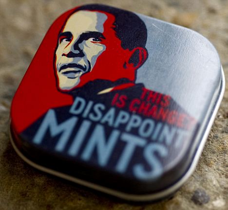 Obama mints Democrats have been busy having anti-Obama merchandising removed from stores and complaining about their sale online, as disrespectful to the President of the United States of America. For example, angry Democrats had breath mints styled after Obama, called "Disappoint-mints" removed from stores, for subtly calling the president a disappointment.