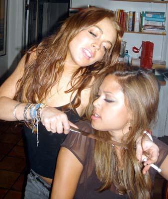 Lindsay foolishly posing with knife to VJ Vanessa Minnillo's neck He spoke of her rampant