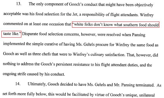 Gehrls also states King slept in the same bed on the private jet as another female flight attendant on Winfrey's plane. Exactly what is going on, on Oprah's private jet. You know what, I don't even wanna know. On to the next topic. Gehrls quoted Winfrey as stating to the private jet's chef, "White folks don't know what Southern food should taste like." Paula Dean does and so does Emeril. For a copy of the lawsuit click here