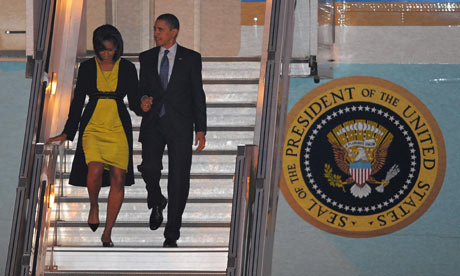 American President Barack Obama (Getty) U.S. President Barack Obama is in London today, with a 500 person entourage, to attend the G20 summit on global finances. In Britain, his name is alternatively pronounced "Obamer" (names ending in the letter "a" often get an "er" added).