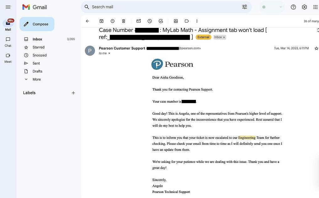 time, after I complained in writing about what transpired.