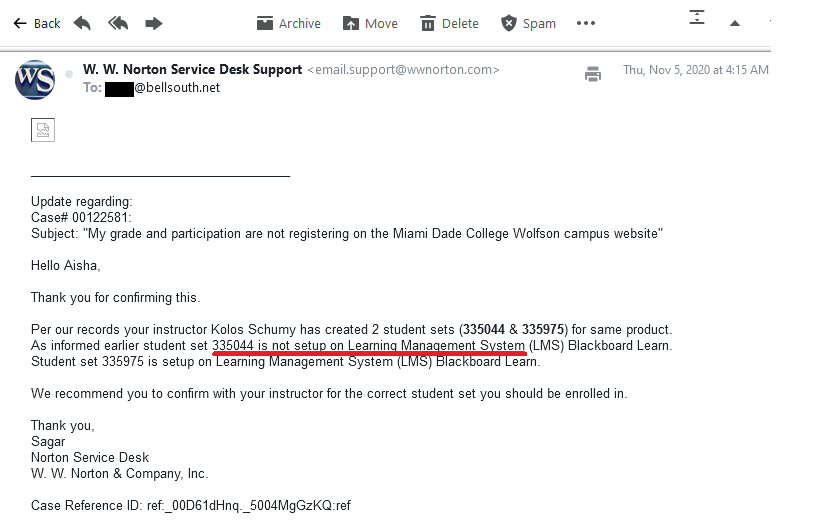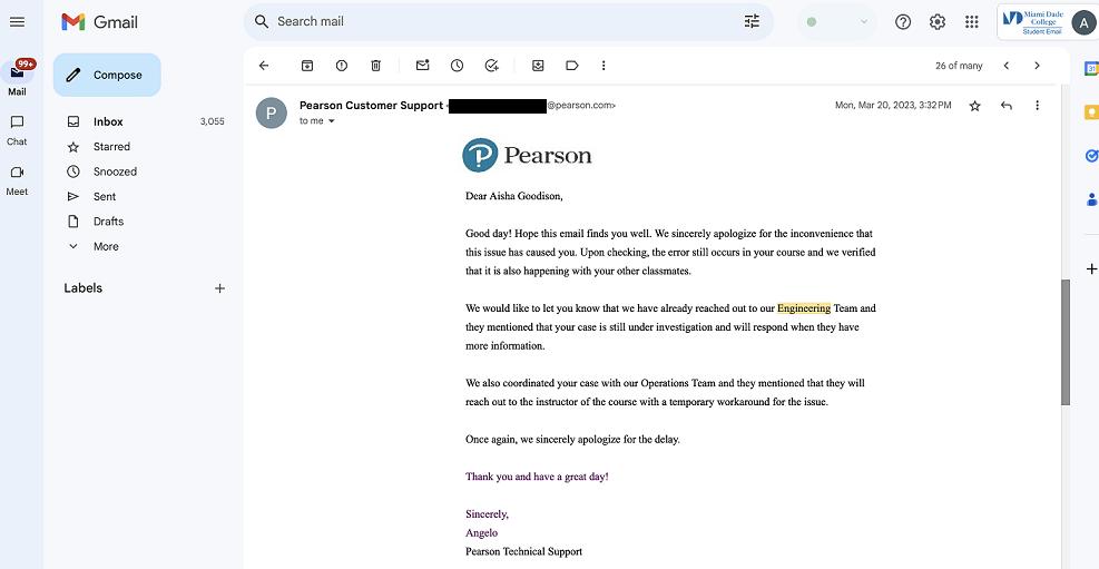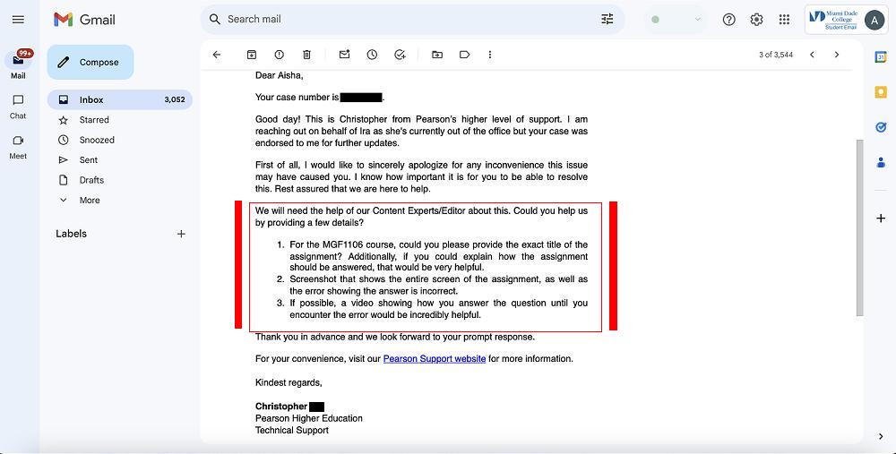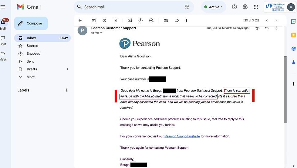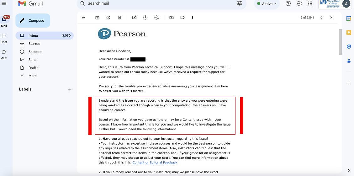 after I received written confirmation via the Miami Dade College computer