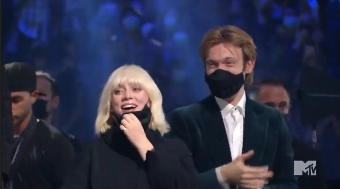 Teen singer Billie Eilish and the man seated