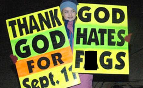 A photo from a Westboro protest (photo redacted by the site) News had surfaced this week that Westboro Baptist church intended to picket the funerals of the Tucson massacre victims. The church is mostly comprised of one family, the Phelps, who have made a regrettable habit of picketing the funerals of a number of high profile individuals and soldiers, in acts that are not kind. They have announced today they will refrain from picketing the funerals of the Tucson victims.