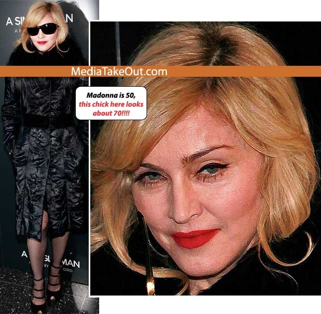 LOL! @ the smug expression. She's posing like she looks like Halle Berry, Jessica White or Megan Fox. It is better to age naturally, than butcher one's face with bad plastic surgery After hiding her mug for weeks (it was great not being accosted by that face when I visited music news sites these past few weeks) Madonna has regrettably resurfaced, now that the plastic surgery scars have healed and amazingly, once again, looks worse than before. How does she do it!